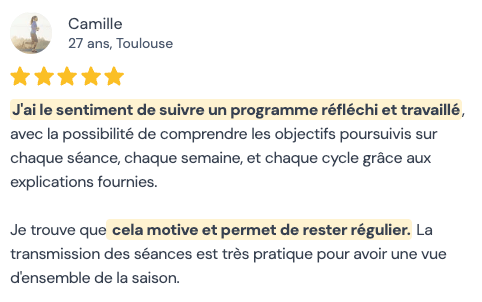 Les séances sont si détaillées qu’un enfant de 6 ans pourrait les suivre. Et le plan est fait pour s’adapter à votre profil (et pas le contraire)