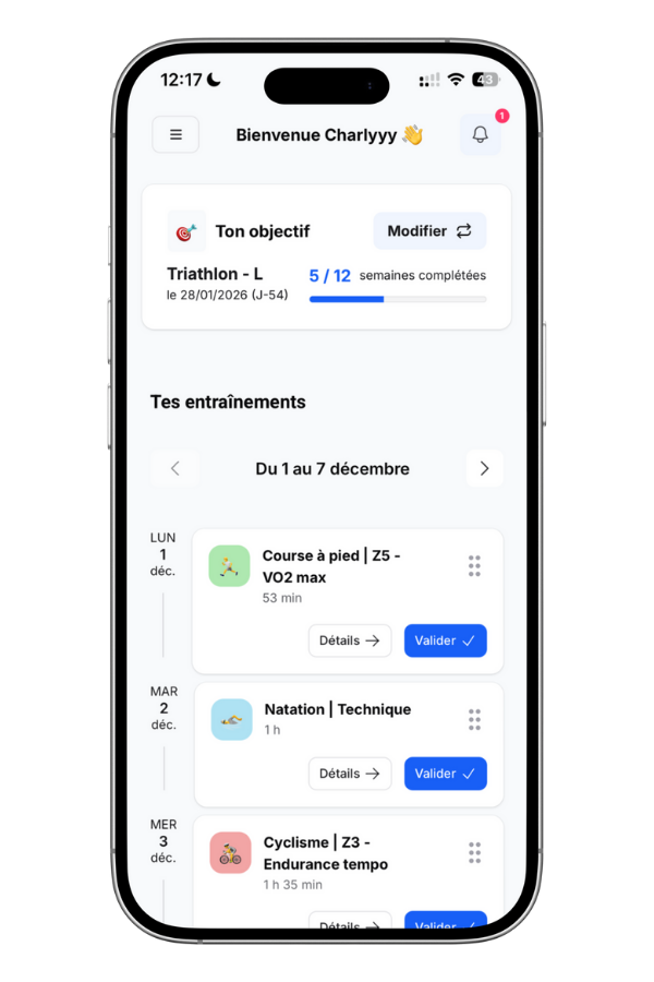 Recevez vos entraînements adaptés à votre profil, vos objectifs, et vos zones d’intensité.